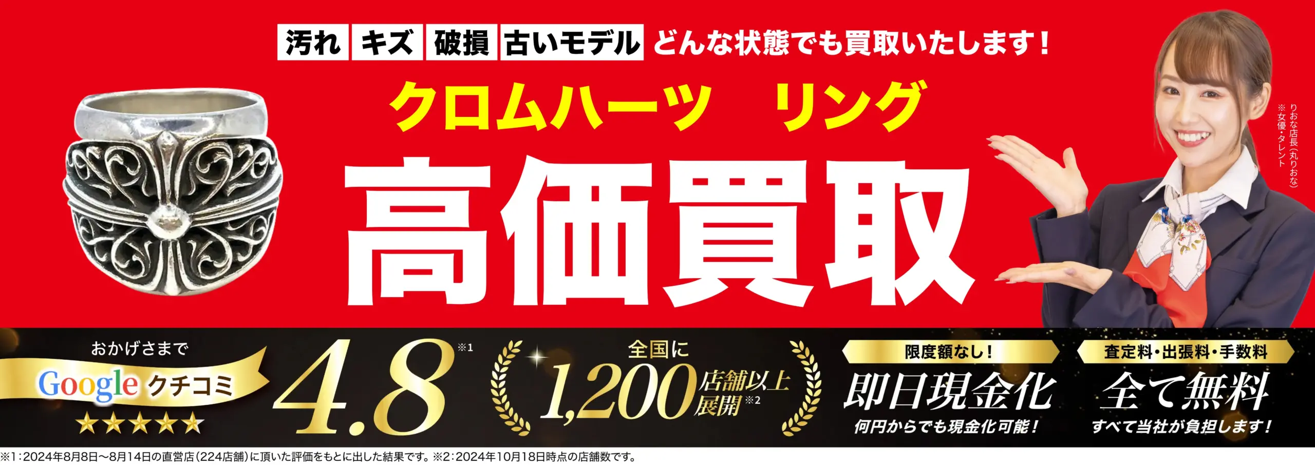 - ブランド品以外のお品物でキズや汚れの修復が難しい場合、買取をお断りさせていただく可能性があります。ただ、アイテムによっては高価買取の対象になる場合もありますので、ご相談ください。