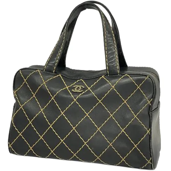 • シャネル ワイルドステッチ ハンドバッグ ブラック×ゴールド金具