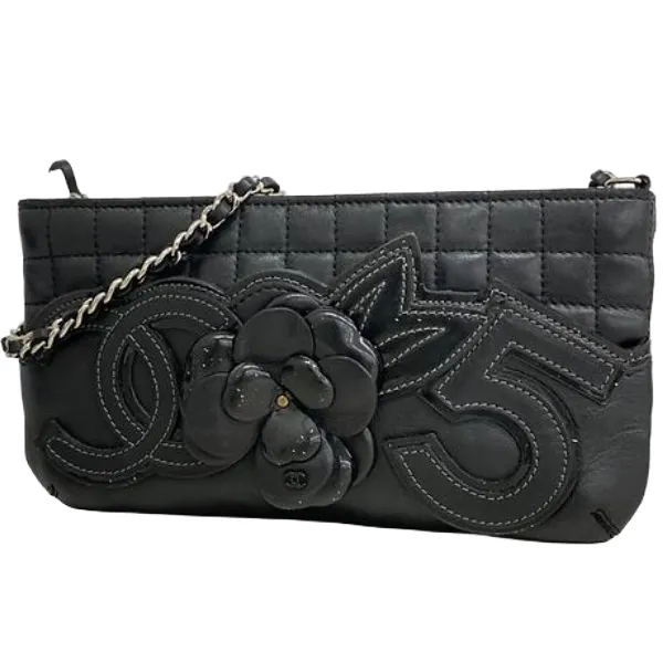 シャネル カメリア チョコバー ショルダーバッグ ラムスキン