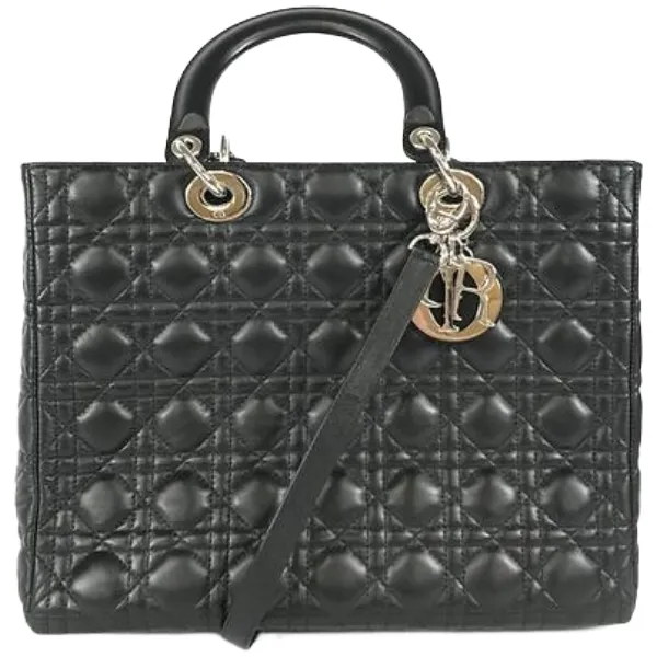 • ディオール レディディオール レザー ブラック ハンドバッグ