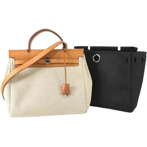 エルメス エールバッグ・ジップ 31 ハンドバッグ キャンバス×レザー ベージュ×ブラウン U刻印