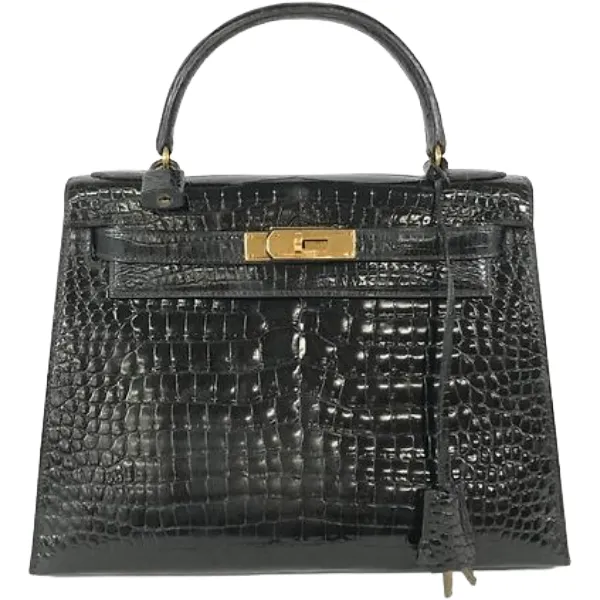 • エルメス ケリー32 ハンドバッグ クロコダイルポロサス ○X刻印 ゴールド金具