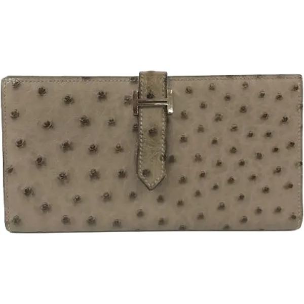 エルメス ベアンスフレ 財布 オーストリッチ □J刻印 シルバー金具