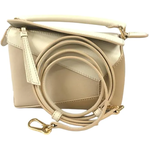 • ロエベ パズルバッグ ハンドバッグ レザー ホワイト×ブラウン×ベージュ