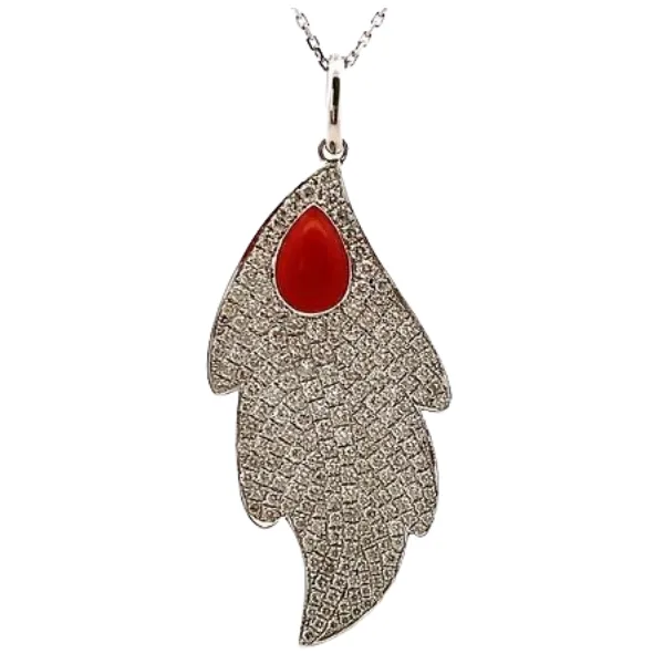 K18/K18WG 珊瑚(サンゴ)ダイヤ ネックレス/ペンダントトップ 11.7g