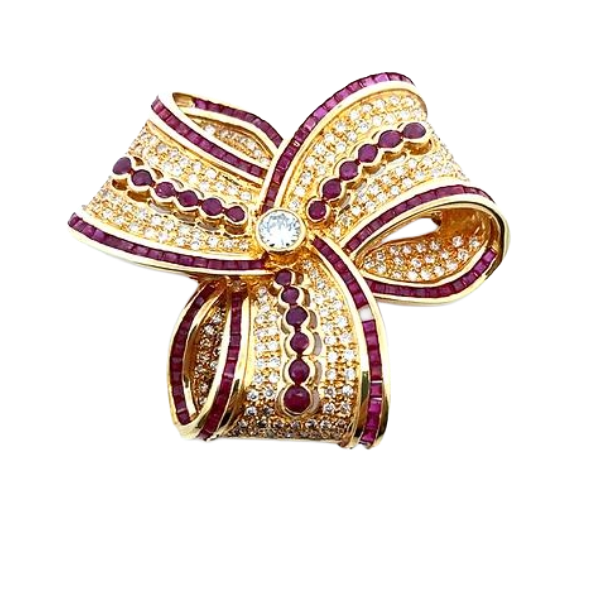 K18 ルビー・ダイヤモンド ブローチ R7.1・D0.38・D2.43ct買取の