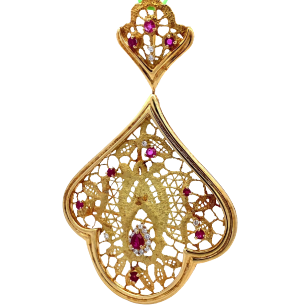 K18 ルビー・ダイヤモンド ブローチ R0.55・R1.16・D0.33ct買取の