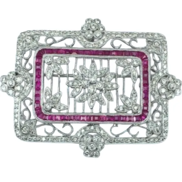 K18 ダイヤモンド・ルビー ブローチ 2.52・1.55 ct買取の