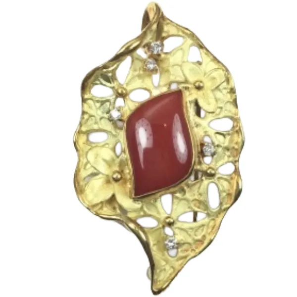 K18 サンゴ・ダイヤモンド ブローチ D0.10 ctの高価買取はおたからやへ!