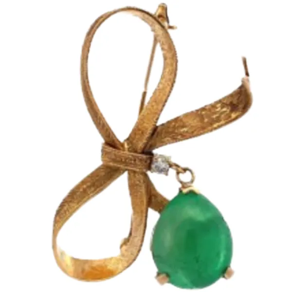 K18 エメラルド・ダイヤモンド ブローチ