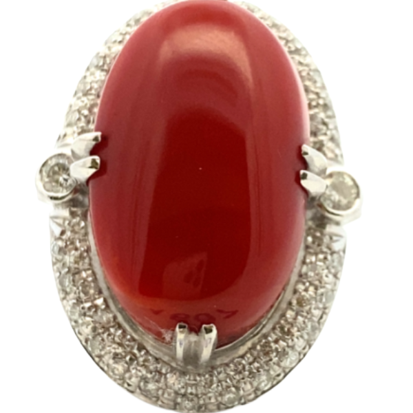 Pt・Pm900 サンゴ・ダイヤモンド リング 0.7ct買取の