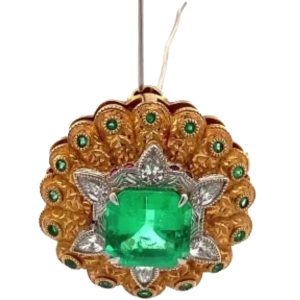 K18K18WG コロンビア産エメラルド・多色石 ペンダントトップ 6.74 ct D0.93・E0.4・R0.2 ct買取の