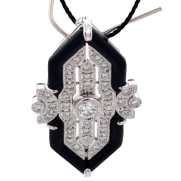 Pt900/K14WG ダイヤモンド・オニキス ブローチ 0.23 ct 0.34 ct買取の