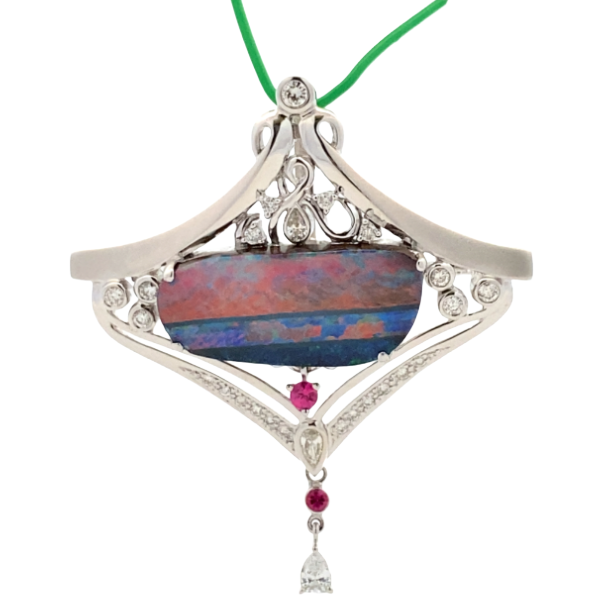 K18WG ボルダーオパール・多色石 ブローチ 12.87・R0.21・D0.75ct買取の