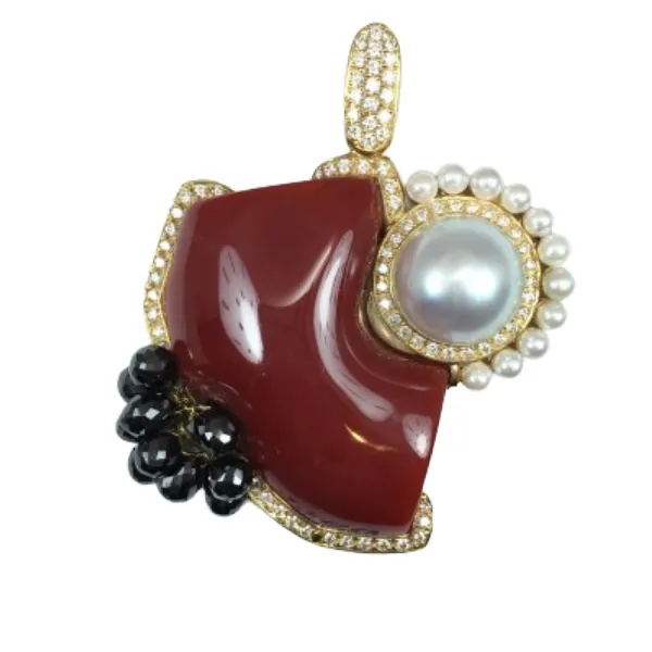 K18 サンゴ・パール・黒石・ダイヤモンド ネックレストップ 13.73ct D1.13ct買取の