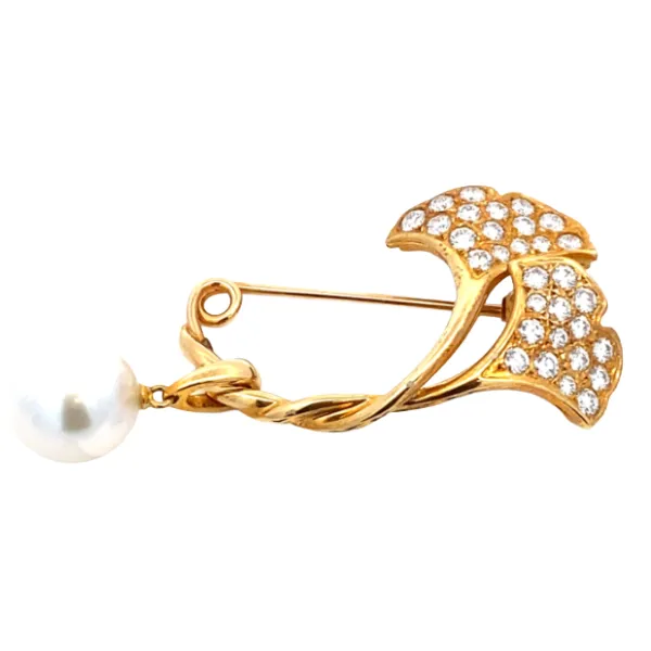 ミキモト K18 パール・ダイヤモンド ブローチ