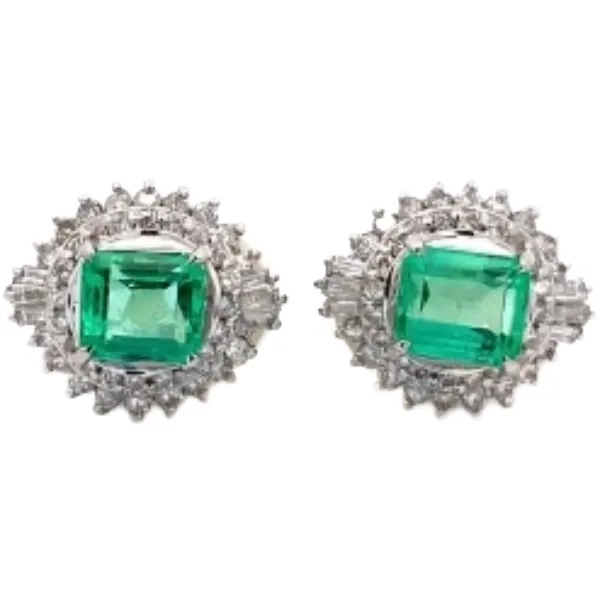 Pt・Pm900 エメラルド・ダイヤモンドイヤリング 1.05・1.11 ct D0.5・D0.5 ct買取の