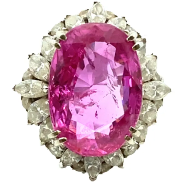 Pt・Pm900 ベトナム産非加熱パープリッシュピンクサファイア・ダイヤモンド リング 16.75・3.1ct買取の