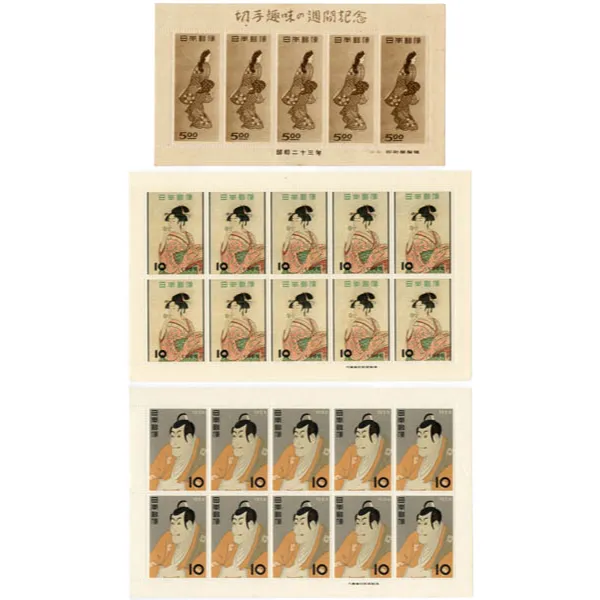 切手趣味週間 見返り美人5枚シート他 計3枚買取の参考価格