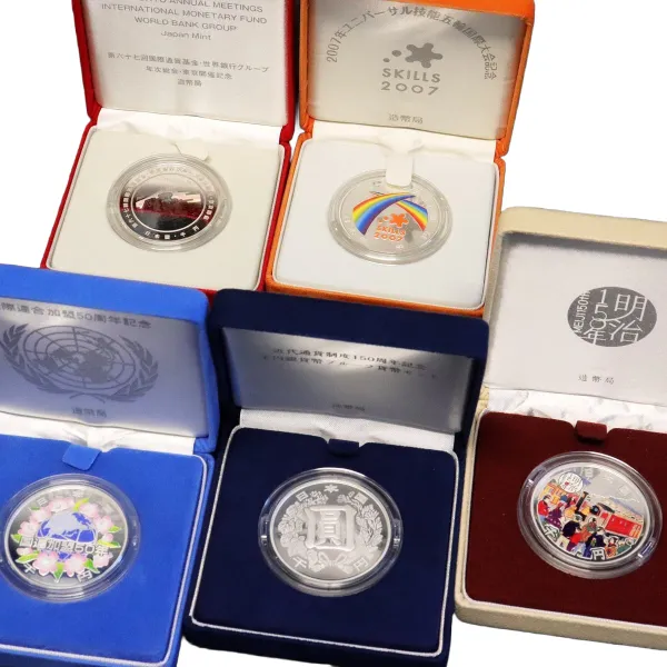 ユニバーサル技能五輪国際大会記念千円銀貨幣 近代通貨制度150周年記念千円銀貨幣プルーフ貨幣 他計5点買取の参考価格