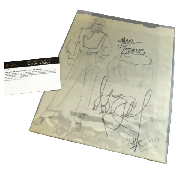 マイケルジャクソン 直筆サイン入り コスチュームスケッチ 衣装スケッチ ジュリアンズオークションにて購入買取の参考価格