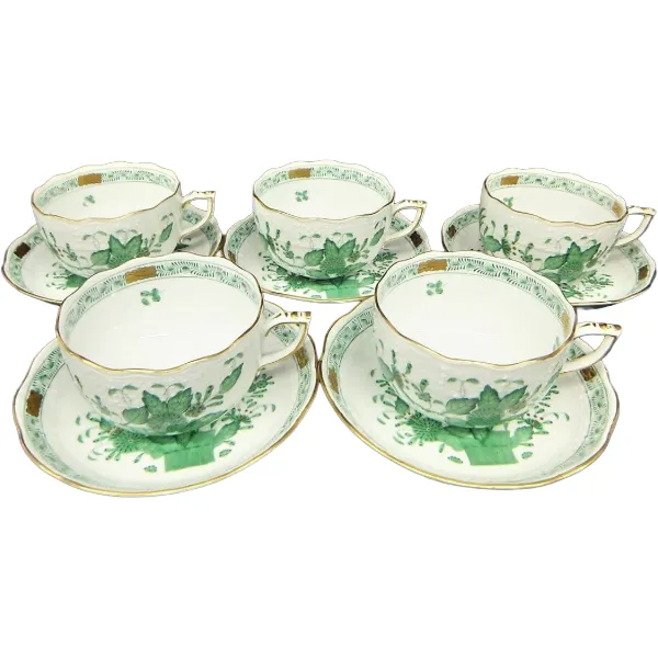 HEREND ヘレンド インドの華 グリーン カップ&ソーサー5客セット