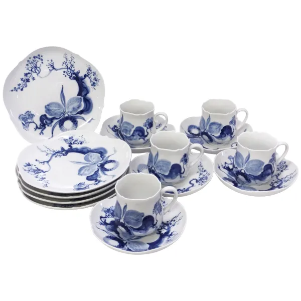 マイセン 茶器セット(湯呑み&茶托5客&急須) ブルーオーキッド