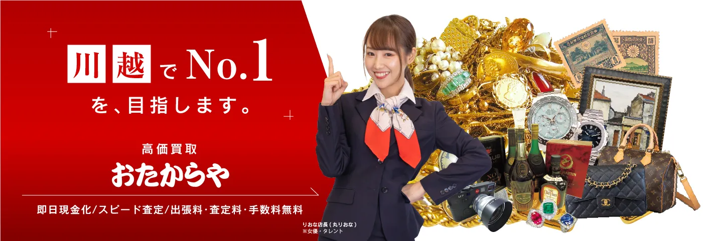 「川越クレアモール本店」では、金・プラチナ・貴金属・ダイヤモンド・ブランド品・ブランド時計・バッグ・切手・古銭・着物・カメラ・車・古着・お酒・美術品など、他社圧倒の高額買取金額で幅広く買取させていただきます。 全国に1,620以上の店舗があり、高価買取の実績多数! 無料の出張買取も承ります! まずはお気軽にお電話ください。